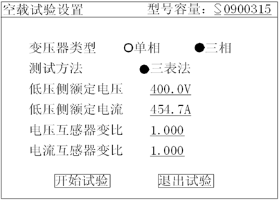 2)在主界面中選擇空載試驗(yàn),則顯示空載試驗(yàn)設(shè)置界面如下圖: