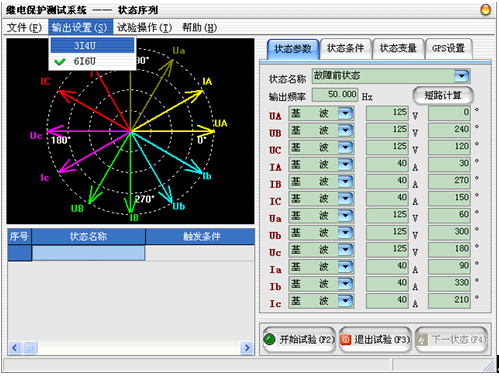 由用戶定義多個試驗狀態(tài),可對重合閘、多次重合閘、備自投、縱聯(lián)保護等進行測試,狀態(tài)數(shù)量可無限添加。